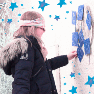 Proposez un petit jeu d’adresse à faire les yeux fermés : plantez votre drapeau sur la lune. Vous pouvez auparavant leur proposer de décorer leur drapeau pour laisser parler leur créativité.