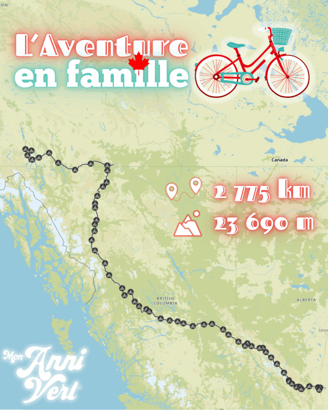 Notre aventure familiale et le break Mon Anni vert se terminent en même temps que ces vacances d’été. Partir au Canada en famille à vélo est une aventure aussi bien humaine, mentale, physique qu’incroyable ! Que de belles rencontres, de beaux paysages, de belles expériences. Voyager à vélo est extraordinaire car il nous remet à l’échelle de la vie sauvage. Et nous propose ainsi chaque jour de prendre part à notre propre vie.