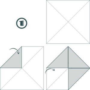 Pliez le carré dans la diagonale pour marquer le pli. Faites pareil avec la deuxième diagonale. Une fois cette manipulation faite, c’est parti pour le pliage :
