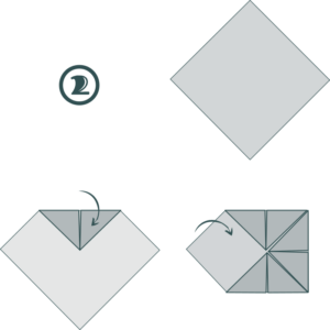 Placez le carré face blanche visible vers vous. Ramenez les coins vers le centre du carré.