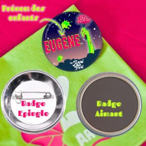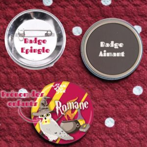 - Finition épingle : à accrocher au cartable ou au tee-shirt,