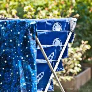 Les tissus et les nappes de Mon Anni vert sont minutieusement choisis et cousus par Mon Anni vert pour coller au thème d’anniversaire. Enfin, un flocage permet de dresser une table totalement coordonnée !