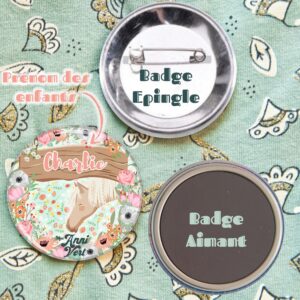 En version épingle à accrocher sur le cartable ou en version aimant à fixer dans sa chambre, personnalisez un badge pour chaque invité. Un souvenir impérissable de cette belle journée.